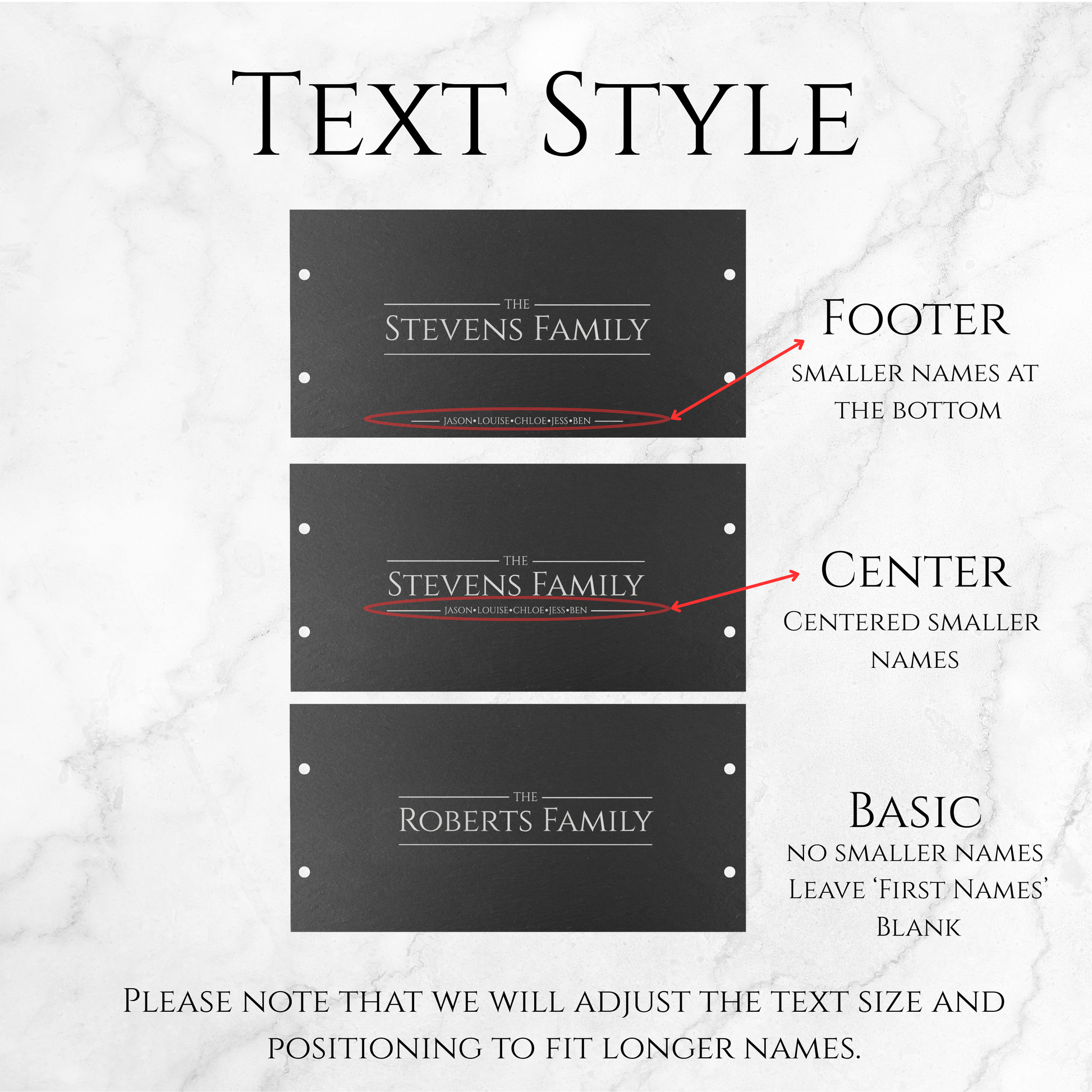 Please note that we will change the size of the decorative lines on either side of the Family Name to make sure it fits the design.