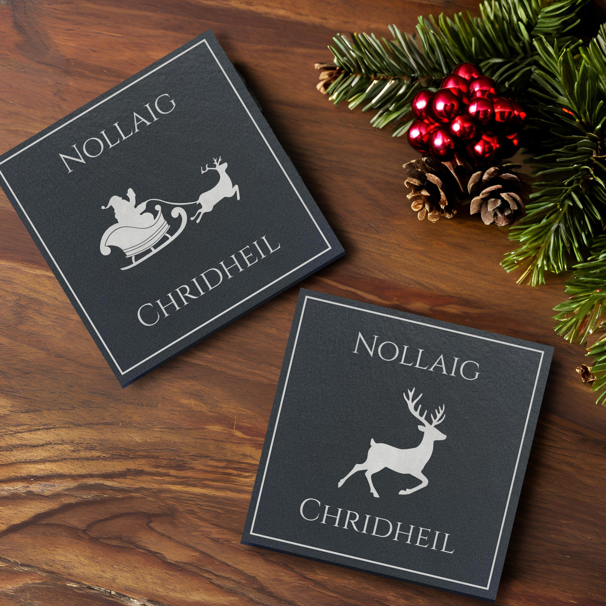 Scottish Gaelic Nollaig Chridheil (Merry Christmas) Slate Coaster Set!