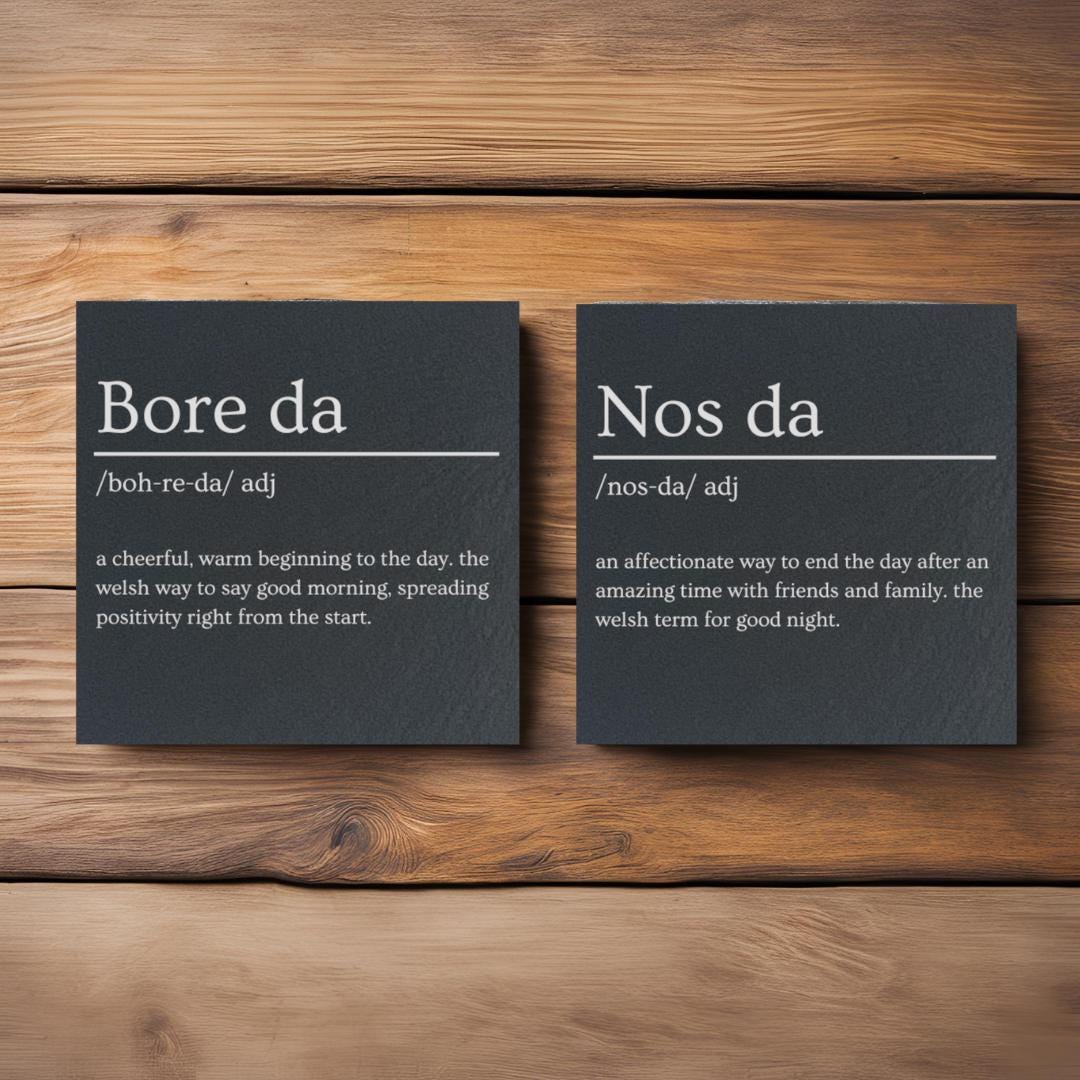 Welsh Language Slate Coaster Set, Perfect for Gifts!